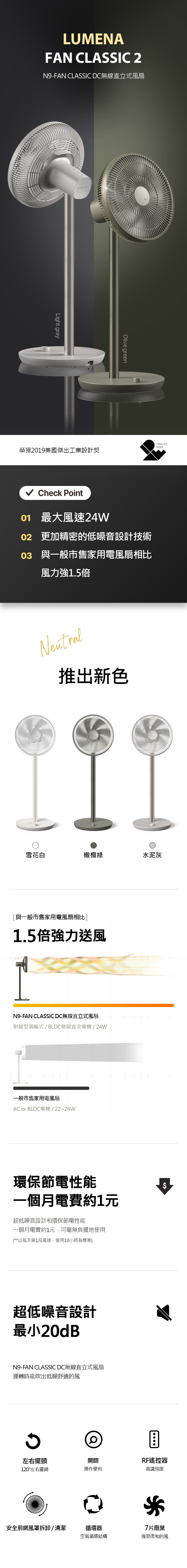 LUMENA CLASSIC DC無線直立式風扇-雪花白